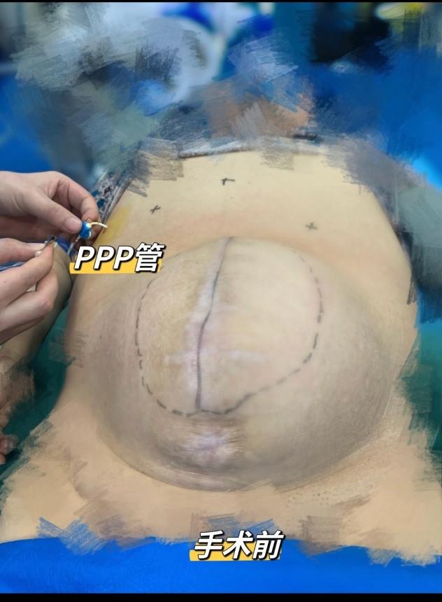 2023年2月,我院胃腸外科收治一位72歲高齡女性患者,患者因1年前于某三甲醫(yī)院予行開腹腹腔良性腫瘤切除術(shù),術(shù)后發(fā)生傷口感染,導(dǎo)致患者術(shù)后出現(xiàn)腹壁巨大切口疝,小腸長期掉入疝凸出腹壁外導(dǎo)致患者的生活質(zhì)量嚴(yán)重下降,像帶了個(gè)包袱,同時(shí)飲食及日常活動(dòng)都受到影響,患者苦不堪言,后多方打聽慕名來到我院,希望解除病痛?;颊呷朐汉笥柰晟葡嚓P(guān)檢查,患者診斷腹壁巨大切口疝(疝內(nèi)容物容積占比25%)明確,同時(shí)合并有高血壓、糖尿病病史,經(jīng)鄭春華主任團(tuán)隊(duì)討論后,為降低患者術(shù)后腹腔間隔室綜合征的發(fā)生,建議術(shù)前維持2周的腹腔擴(kuò)容處理,積極術(shù)前的漸進(jìn)性腹腔擴(kuò)容(PPP技術(shù))處理,將患者腹壁像吹氣球一樣擴(kuò)展開來,復(fù)查患者腹部CT檢查提示擴(kuò)容效果良好,積極術(shù)前準(zhǔn)備完善后,考慮患者高齡、糖尿病病史,為減輕患者術(shù)后的疼痛及愈合過程,經(jīng)討論后決定予行腹腔鏡腹壁疝無張力修補(bǔ)術(shù)(IPOM)術(shù)式,單純依靠腹壁幾個(gè)穿刺孔傷口解決患者目前巨大疝問題。術(shù)后患者經(jīng)過科室嚴(yán)密監(jiān)護(hù),恢復(fù)良好,住院觀察數(shù)天后出院,收獲了患者及患者家屬的認(rèn)可及感謝。