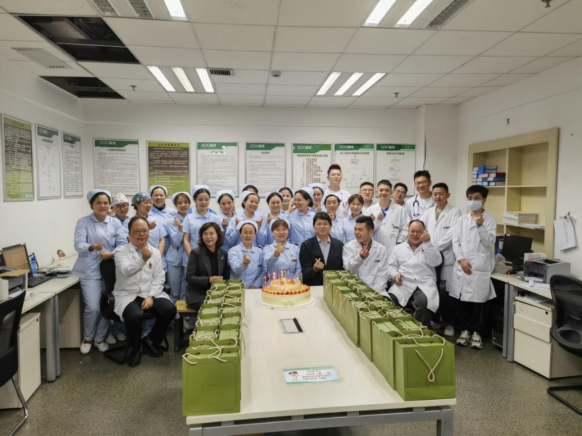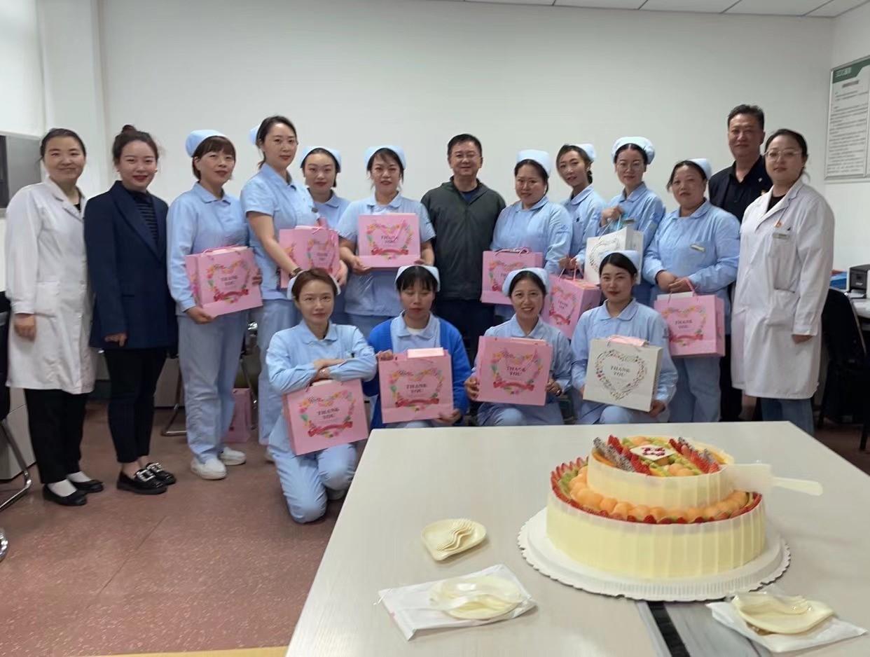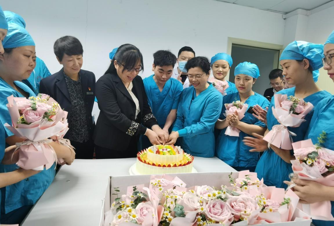 5月12日當天,黨委書記劉濤、院長黃琦、紀委書記張雨翔、副院長周青、副院長田廣、副院長羅莉、工會主席沃明黔、調(diào)研員趙敬飚、院長助理楊為民與各職能部門領導向全院護理人員送上了節(jié)日祝福,并為美小護們準備了節(jié)日的蛋糕?!暗案鈺r刻”分別在不同病區(qū)舉行著,天使們手捧甜蜜的蛋糕,綻放的笑容更加美麗動人。