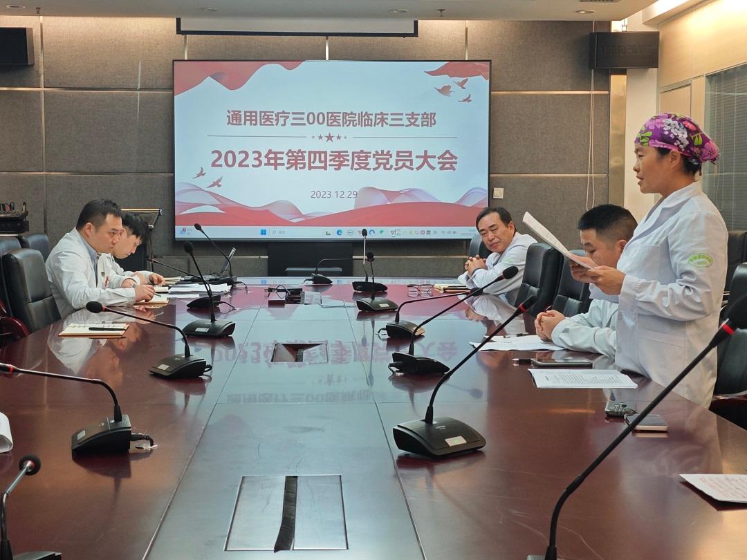 當(dāng)前位置:首頁(yè)>新聞中心>新聞動(dòng)態(tài)為深入學(xué)習(xí)貫徹習(xí)近平新時(shí)代中國(guó)特色社會(huì)主義思想主題教育,2023年12月29日,臨床三支部在門(mén)診四樓大會(huì)議室召開(kāi)2023年第四季度黨員大會(huì)暨黨課學(xué)習(xí)。黨委書(shū)記劉濤參與了本次會(huì)議。
