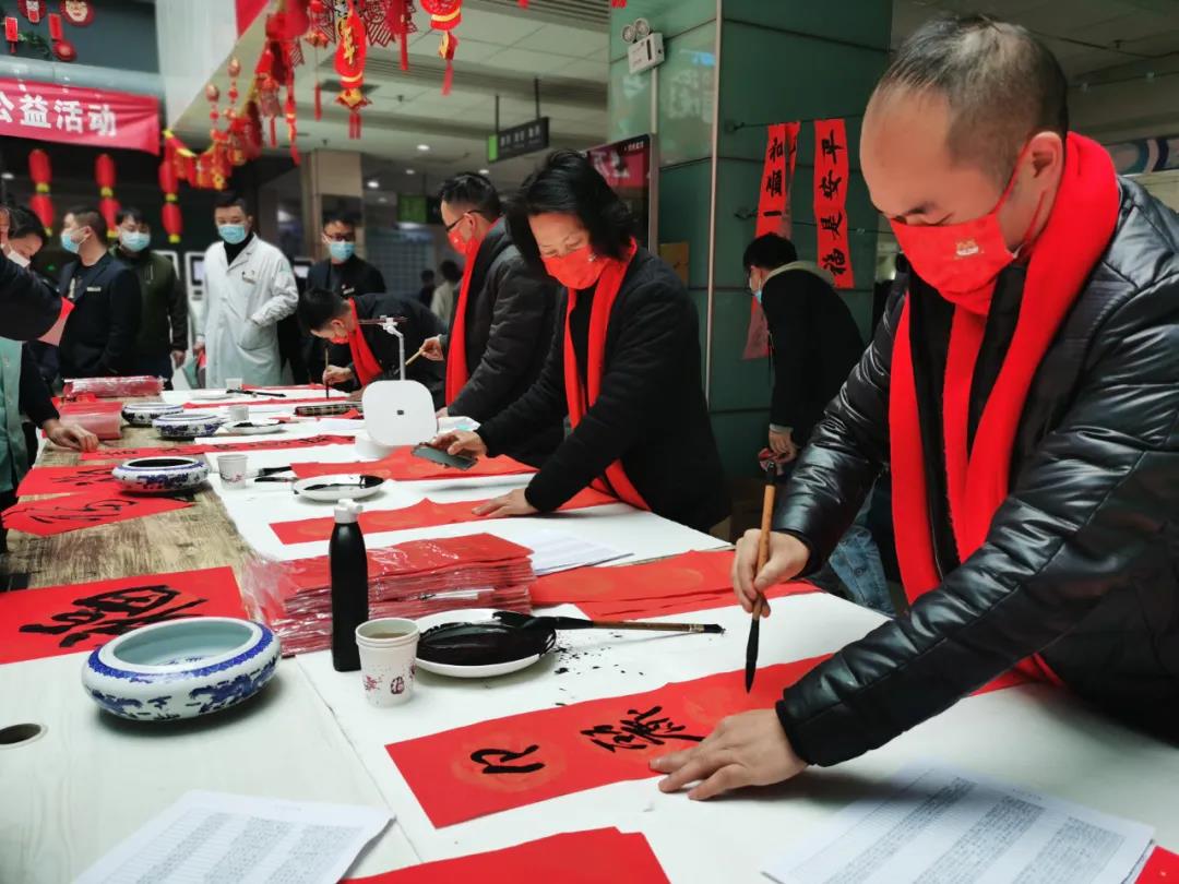 2022年1月25日,門診大廳翰墨飄香、人潮涌動,來自貴州省書法界的四位大師親臨現(xiàn)場揮毫潑墨,在喜慶的紅紙上書寫了一幅又一幅春聯(lián)佳作,來往的職工和病患者們看見這一幅幅技藝精湛的書法,連連稱贊,紛紛選取了自已心儀的春聯(lián)。一幅幅飽含寓意的“萬事如意”、“五福臨門”、“人和家順年年好”等作品,寄托著大家對新春的期盼,職工們、患者們手捧大紅春聯(lián),臉上洋溢著掩不住的喜悅。