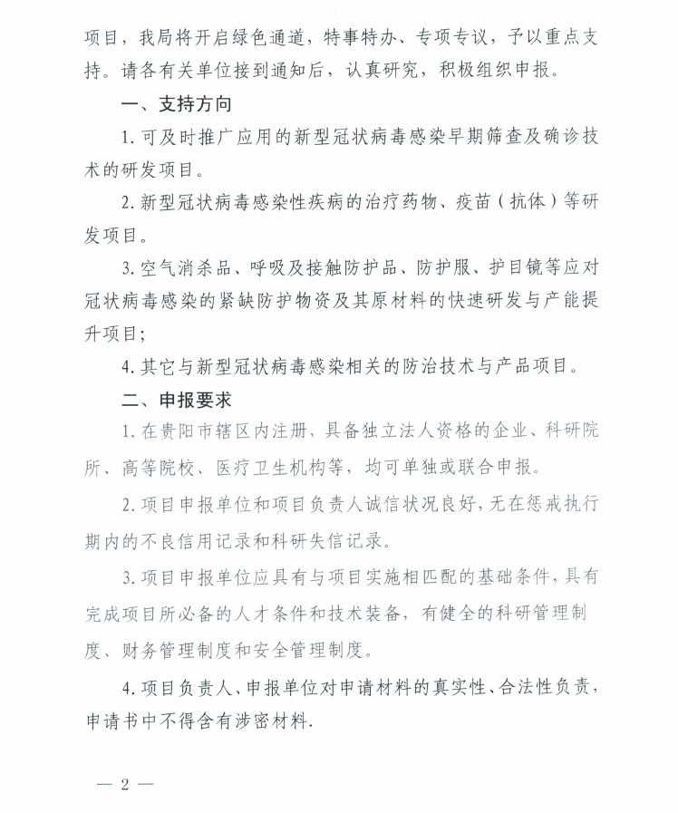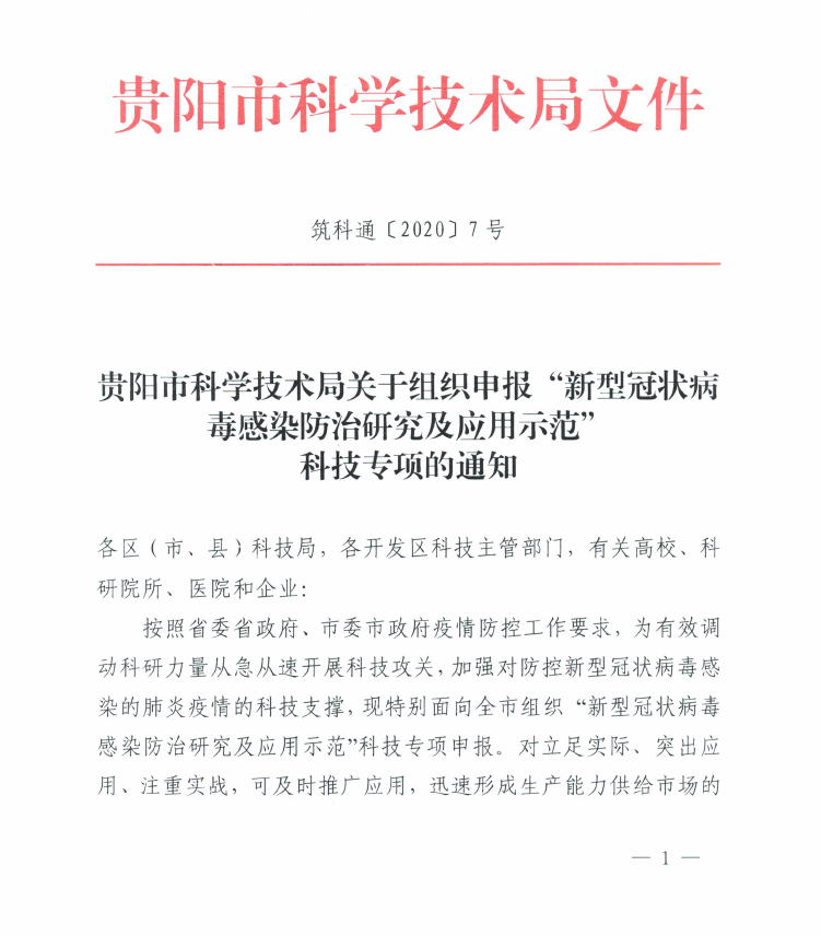 附件:《貴陽市科學(xué)技術(shù)局關(guān)于組織申報“新型冠狀病毒感染防治研究及應(yīng)用示范”科技專項的通知》